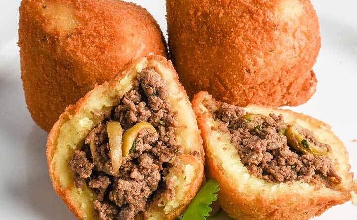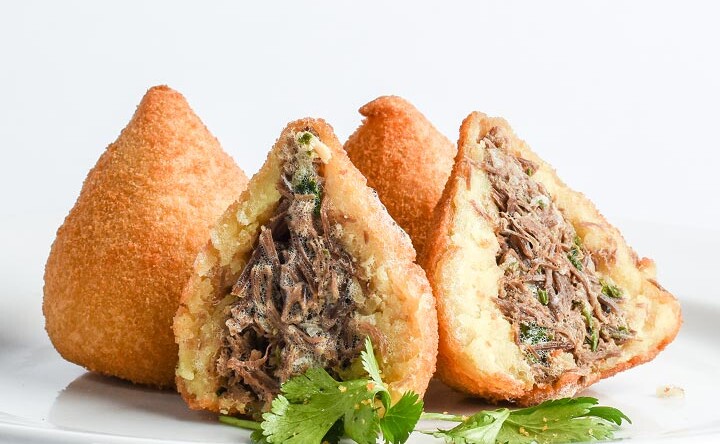 Seasoned, deep-fried dough, ground sirloin & picanha blend steak.