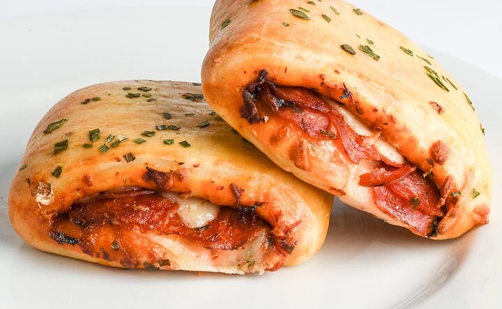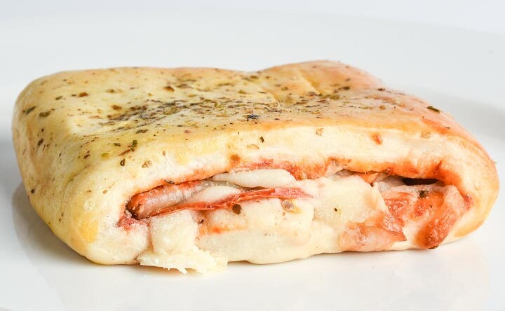 Kneaded dough, mozzarella cheese, pepperoni, tomato sauce.