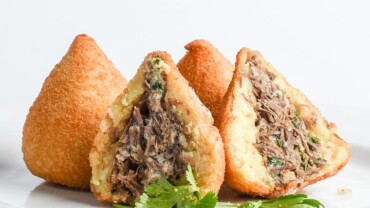 Seasoned, deep-fried dough, pulled sirloin & picanha blend steak.
